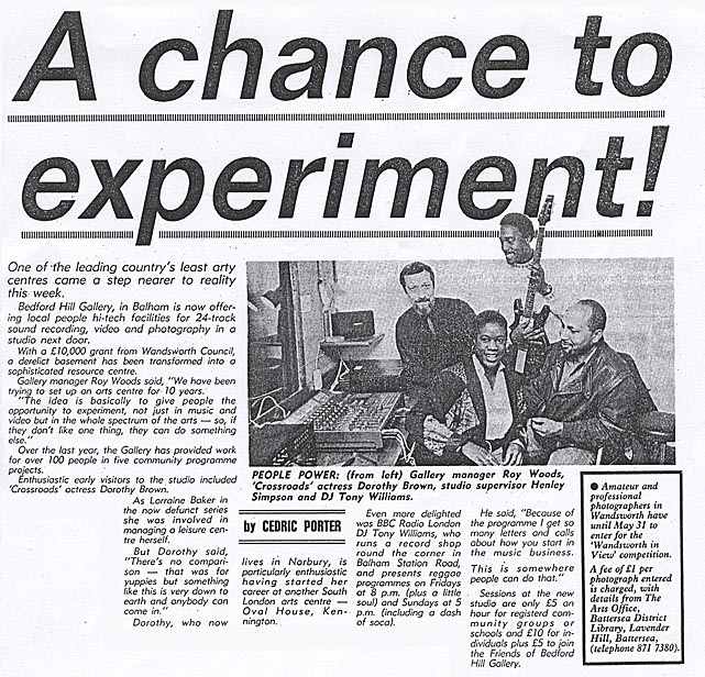 In 1988 Bedford Hill Gallery opened a fully equipped recording studio to train local people in the skills necessary to work in the music industry.